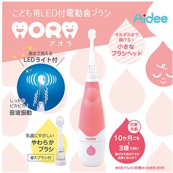 ●LEDを光らせることで赤ちゃんの歯を明るく照らしながら簡単に歯磨きを仕上げることができます。●16000回/分の音波振動で赤ちゃんの歯磨きを優しくキレイに仕上げます。●25gの軽量設計で、赤ちゃんだけでなくママ・パパにも優しい子ども用の電動歯ブラシです。●業界最小ブラシヘッドサイズなので小さな歯や細かな場所を磨きやすく、柔らかくてやさしい毛先です。●人間工学に基づいた持ち易いハンドル。自立タイプで立てて保管できるから、衛生的です。●30秒毎にブルッとお知らせタイマー&2分間自動電源オフ機能でで効率的な歯磨きができます。