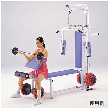バックエクステンション、レッグカール、レッグエクステンション、ベンチプレス、ラタラルレイズ、バタフライ、ラットプルダウン、ツーハンズベンチカール
