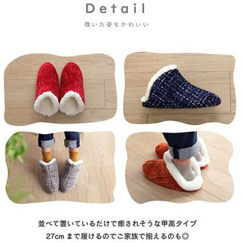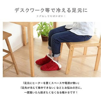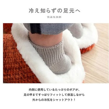 あったかボア仕様で足首まで覆うため暖かくかかとがないため脱ぎ履きがしやすいタイプです。