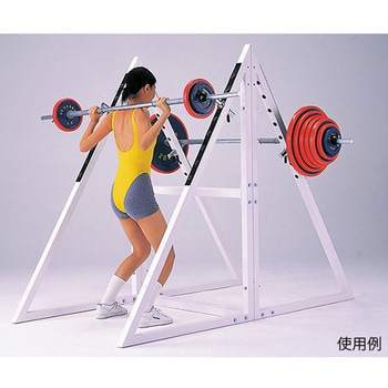1台でお使いの時背を壁面に密着することで省スペースでお使い頂けます。2台でお使いの時背どうしを付けることにより省スペースでお使い頂けます。フック巾は110cmですのでバーベルシャフトの内寸が112cm以上のものをお使いください。バーベル・プレートは別売です。