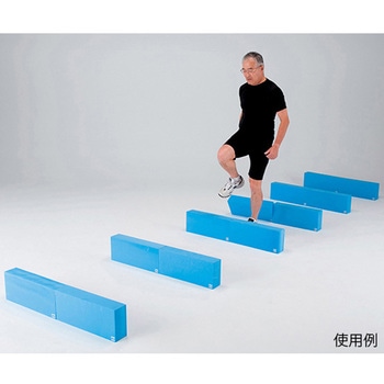 【使用方法】ハードルを2m間隔にならべての歩行(10mを何秒・分に歩行できるかチェックする)。【目的】筋力・平衡性・歩行などの行動体力低下を確認し運動能力(体力)改善の評価。