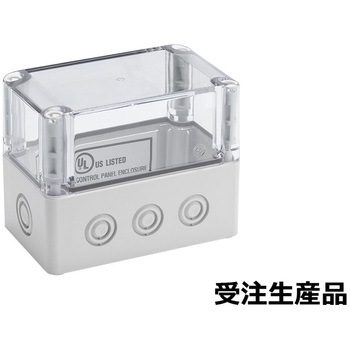 UL認証の耐衝撃性に優れたポリカーボネート製ボックスです。Mネジサイズのノックアウト付で配線用穴加工が可能です。端子中継ボックス、制御用コントロールボックス、通信用ボックスなど様々な分野でご利用いただける万能プラボックスです。完全受注生産(納期 6ヶ月)でのお取り扱いとなります。UL認証は、UL FILE No,E189312 になります。アメリカ(UL508A)・カナダ(CSA C22.2 No,14)を認証されています。適用規格は INDUSTRIAL CONTROL PANELS になります。詳細は www.ul.com をご確認下さい。