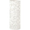 シンプルデザインですっきりと置ける、スチール製傘立て。スリムで場所を取らず、狭いスペースにも置けるサイズ感が嬉しい傘立て。本体はリーフ柄で型抜きデザインを施した、オブジェのようなシルエットの円柱タイプ。粉体塗装のスチール製で錆びにくく丈夫な仕上がり。本体重量は約1.5kgと、しっかりとした安定感がありながらも移動はサッとできる重量設計。取り外し可能な水受けトレイ付きで、傘から滴り落ちる雨水が外に漏れだすのを防止。傘立て以外にも、グリーンを入れたり長いものの収納に使ったり幅広く活用。