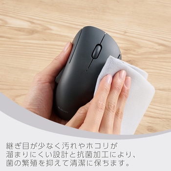 抗菌加工により、マウスの表面に付着した菌の繁殖を抑えて清潔に保ちます。(抗菌範囲:マウス筐体、ホイール部分、印刷部分)