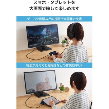 スマートフォンやパソコンなどの映像をディスプレイなどに出力できる、USB Type-C(TM)ポートをHDMI(R)プラグに変換するケーブルです。HDMIポート搭載ディスプレイなどに映像を出力することができ、画面複製と画面拡張に対応しています。配線しやすくクセが残りにくい、やわらかケーブルを採用しています。