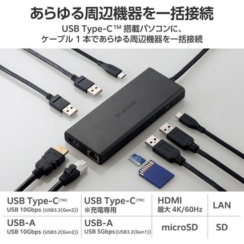 用途USB Type-C(TM)コネクターでパソコンに接続し、USB機器やHDMIディスプレイを接続できるドッキングステーションです。