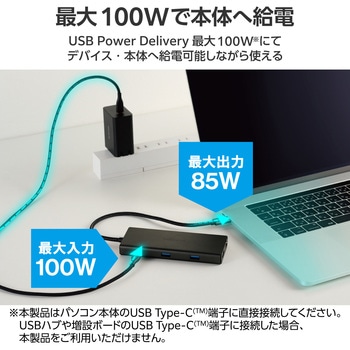 USB Type-Cコネクターを経由して最大100W(※)の電力をデバイス/パソコン本体に供給するUSB Power Deliveryに対応しています。