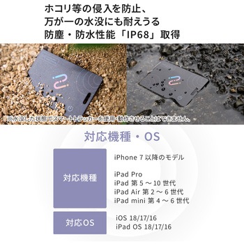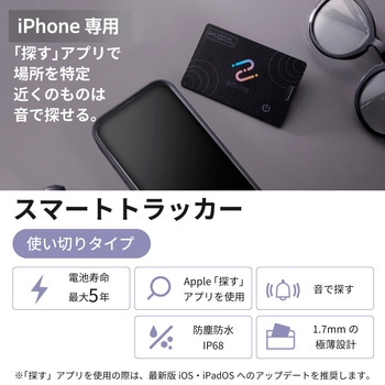 用途iPhoneの「探す」アプリから荷物のありかを探せるカード型スマートトラッカーです。専用アプリ・ソフトのダウンロードは不要。購入後すぐに使えて、財布やかばんなど大切な荷物の紛失を防ぎます。