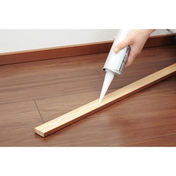天井面や垂直面に塗布してもずれにくい内装用接着剤です。木材・プラスチック・鋼材など幅広い素材に接着できます。速硬化タイプのため巾木、プラ木レンガなどの素材を水平面・垂直面に素早く強力に接着できます。揮発性有機化合物を含まない無溶剤タイプなので、 火災等の心配がありません。ノズルを付けた状態で保存が可能なキャップ付きです。