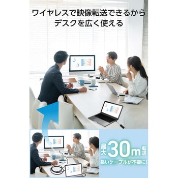 会議室など障害物のない空間で、最大30m転送できるので長いケーブルを使わずに接続できます。