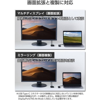 ※USB Type-Cコネクターからの映像出力に対応しないパソコン本体の場合、本製品の映像出力ポートは動作しません。映像出力を行う際は機器がDisplayPort(TM) Alt Modeに対応している必要があります。