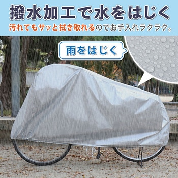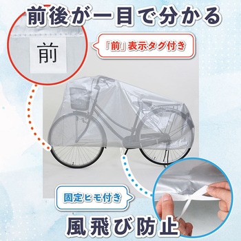 【はっ水加工で水をはじく】撥水加工により雨をはじき、汚れてもサッと拭き取ることができお手入れ簡単。【風飛び防止ヒモ・前表示】裾ヒモ付きでカバーが風で飛ぶのを防止。前後が一目で分かる便利な「前」マーク付き。【前後ゴム入りでフィット】前後ゴム入りで自転車にしっかりフィットするので取り付け・取り外し簡単。