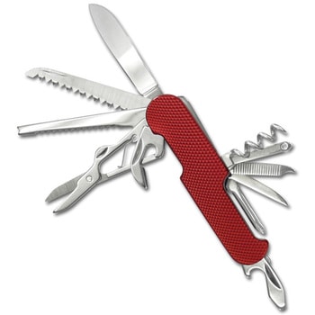 1ナイフ 2ノコギリ 3針はずし 4ウロコ取り 5ハサミ 6缶切り 7コルク抜き 8ひも通し 9爪そうじ 10ヤスリ 11穴あけ 12プラスドライバー 13マイナスドライバー 14栓抜き
