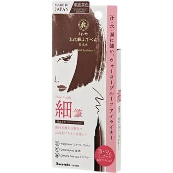 絶妙な弾力の筆先がはね上げラインを美しく仕上げる。細筆タイプ。筆先に絶妙な弾力を持たせていますので、はね上げラインが美しく仕上がります。肌馴染みの良い茶色こだわりの描きごこち速乾&ウォータープルーフ7種類の保湿美容成分配合カルミンフリー(コチニール色素フリー)