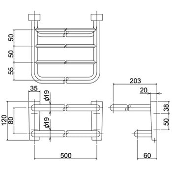 浴室でも使用可能なシンブルなタオル掛け付タオル棚です。