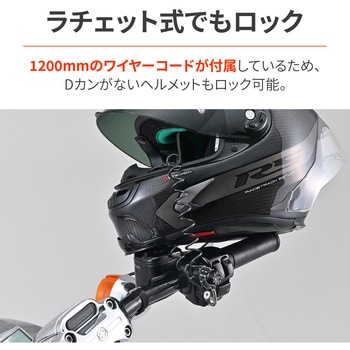 ワイヤーコード(最大長:約1.2m)付属でDカンのないヘルメットもロックが可能です。