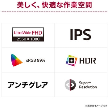 通常のモニターの33%横長な画面と2560x1080の高解像度が効率的な作業性を提供。二つのソフトウェアを左右に並列処理させての作業や、Excelなどを全画面表示させて、多くの情報を表示させるなど、一般的な縦横比16:9のモニターよりも快適な作業空間を実現します。アスペクト比21:9はシネスコサイズの映画とほぼ同じ縦横比です。16:9で表示されてしまう没入感を阻害する黒帯を表示せず、画面いっぱいに表示される映画を楽しめます。MaxxAudioを採用した5W+5Wの内蔵スピーカーを搭載し、外部スピーカーに接続しなくても臨場感あふれるサウンドを実現します。映像のコマが切り替わる際に、バックライトのオンオフで残像感を軽減する「1ms Motion Blur Reduction」で、くっきりとした映像を映し出します。高速な動きによる映像のぼやけを軽減することで、よりターゲットの動きが見やすくなります。3辺フレームレスかつ非常にスリムなボディは省スペースで、オフィスや自宅のインテリアにスムーズに溶け込みます。スタンドは、前:-5゜~後:15゜のチルト(縦角度調整)に対応。姿勢や使用環境に合わせた画面の配置が可能です。USB Type-C、DisplayPort、HDMIを各1つに加え、ステレオミニジャックを備えています。