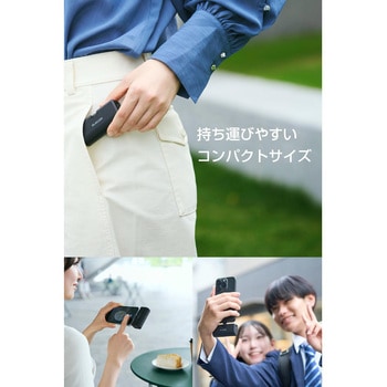 手のひらに収まるコンパクトサイズ。バッグのポケットやスマホショルダーなどにしまって持ち運べます。