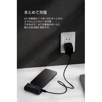 iPhoneを充電しながら、本製品にも同時に充電できる”まとめて充電”に対応しています。カフェや旅先など、充電ポートが一つしかない場面でも便利な機能です。