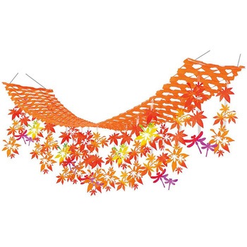 【商品特徴】天井飾りに人気の紅葉の2連ペナントです。天井から吊るして、手軽に秋色空間が完成します。シーズンが終わると折りたたんでコンパクトに収納できます。