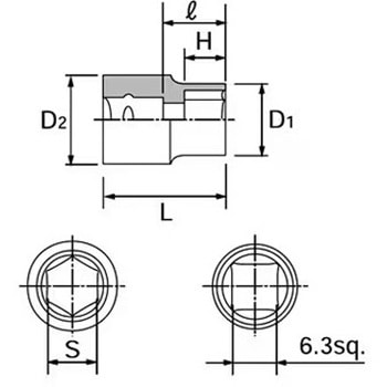 6.3sq.ソケット(六角) 対辺寸法14mm