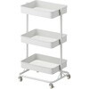 高さ調整可能で収納物にあわせて使用できるキッチンワゴンです。2.5cm間隔調整可能です。かごはほこりが溜まりにくく通気性が良いパンチング仕様です。お客様組み立てとなります。
