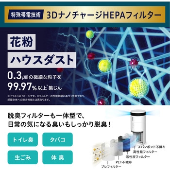 特殊帯電技術採用の3DナノチャージHEPAフィルターで空気をキレイに。