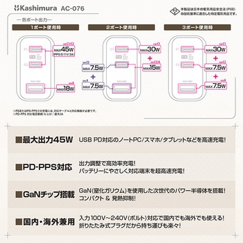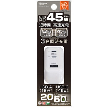 USB PD対応 AC充電器 45W Type-C×2 GaN 急速充電