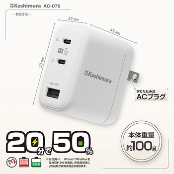 USB PD/QC3.0対応 GaN充電器 67W Type-C+Type-A