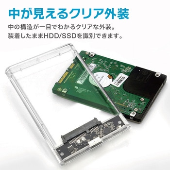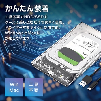 HDD/SSD ポータブルケース クリア 2.5インチ SATA USB3.1 Type-C 5Gbps 6TB対応 工具不要 Win Mac