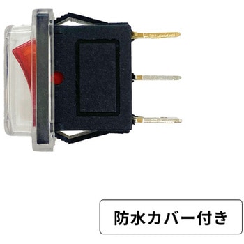 ON-OFF/ロッカースイッチケーブル接続:ハンダ付スイッチ電流容量6AスイッチON時赤色LED点灯・OFF時消灯直流DC12-24V用/交流AC100V用の2種類あり(購入時選択式)シリコン製防水カバー付きも選択可