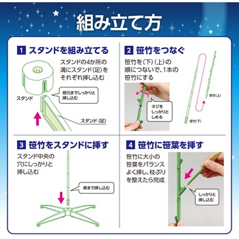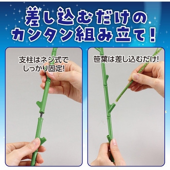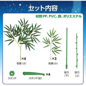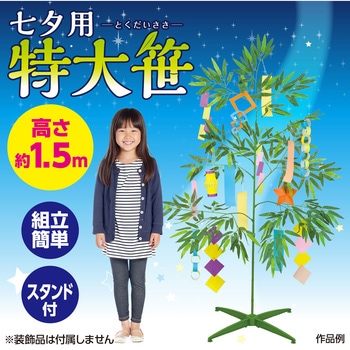 キャッチコピー:安定感抜群の七夕用の特大笹!商品説明:差し込むだけで簡単に組み立てができる七夕笹です。4本足のスタンド付きで、安定感があります。1.5mとコンパクトでちょうど良いサイズ感で、小さなお子様でも飾り付けが楽しめます。涼しげな七夕の雰囲気作りや、浴衣・お中元コーナーの演出にも最適!