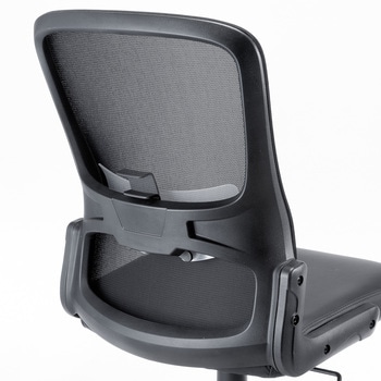 背もたれ、座に涼しいメッシュ素材を使用し、蒸れにくく快適。座面はクッション製も高く、すわり心地も抜群です。座面にPUレザーを採用しており、汚れや濡れても、すぐに拭き取れます。座面下のレバー一本で座面の高さが調節できます。腰の負担を軽減するランバーサポート装備、上下に可動可能。