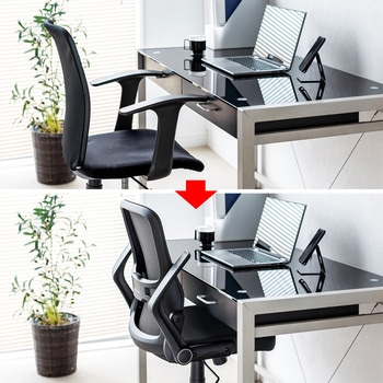 腰の負担を軽減するランバーサポート装備、上下に可動可能。