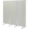 丈夫で錆びにくいアルミ製フレームを採用し、軽量ながら長期間使用しても安心です。幅600mmのパネルが3枚連結されており、スペースに合わせて自由にレイアウトできます。キャスター付きでスムーズに移動できるため、配置換えや移動設置が手軽に行えます。使用しないときは折りたたんで省スペースに収納でき、管理や持ち運びも便利です。高さ1800mmで視線をしっかり遮り、プライバシーを確保した空間づくりが可能です。パネル面には押しピンが使えるため、掲示物の貼り付けや案内表示にも対応できます。