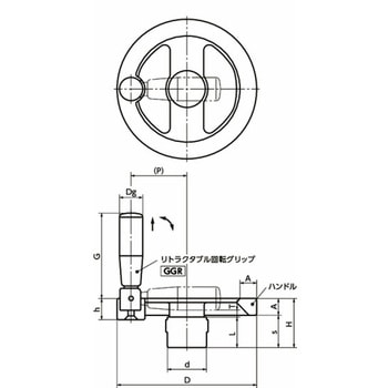 ・リトラクタブル回転グリップGGRつき2スポークハンドル。