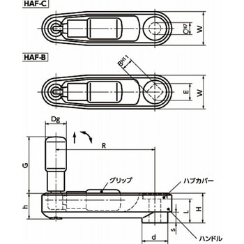 ・引き上げてから倒すリトラクタブル回転グリップGGRつきのクランクハンドル。・倒したグリップはハンドル本体のポケットに収納されます。・ハブカバーは簡単に着脱できます。・丸穴(公差:H7)と角穴(公差:H11)が選択できます。