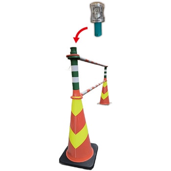 プラスワンはコーン上部に取り付ける事で、コーンバーの2段取付が可能になるコーン用のパーツです。コーンバーを2段設置にする事で跨ぎ侵入を防止します。上部には工事灯の差込穴があるので、コーン用の工事灯・保安灯も同時に使用できます。