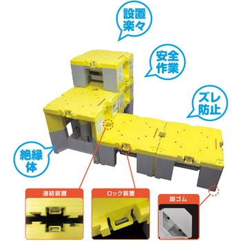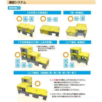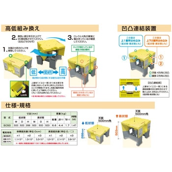 ステップキューブは軽作業をサポートする樹脂製作業台です。ポリプロピレン製の為、軽量で持ち運び簡単です。用途に応じて積み重ねや連結ができ、高所作業のサポートができます。下部にゴム製パッドを装着しており、ズレを防止します。絶縁体のため、電気・通信工事にも最適です。