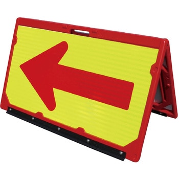矢印が付いた反射マルチサインボードです。本体に凹凸面をつけているので重ねて収納するときにズレません。ブロー成形で割れやサビが発生せず耐久性があります。持ち手があるので、移動時も楽です。