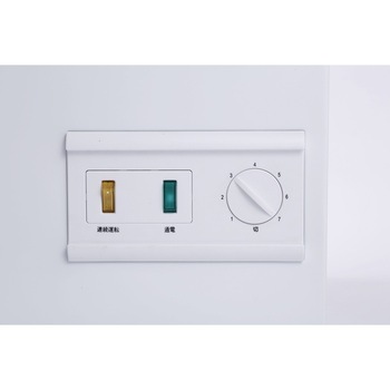 中身が見えるガラス扉を採用した冷凍ショーケースです。ショーケース正面に通電ランプ・温度調整ダイヤルを搭載。急速冷凍機能付きです。