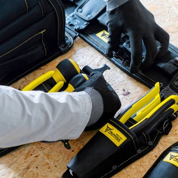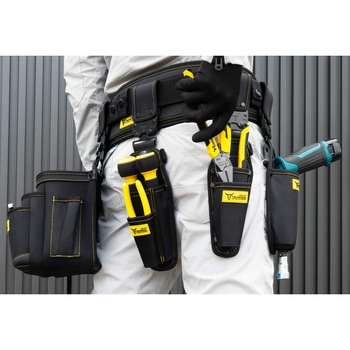 150mmのドライバーも難なく差せる【ワンタッチ組み替えバックル】作業に応じてカンタンに工具差しを外す・組み替えられる新機構バックル。【誤解除防止レバー】誤解除による落下防止のためバックルを押し込まないと現れない解除レバー。(特許申請中)【耐荷重200kgの高強度バックル】耐久試験後も問題なく機能。※2010N≒205kg ※耐荷重はバックル本体のみ