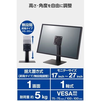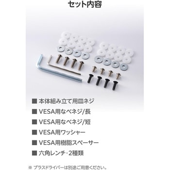 VESA規格(75mm×75mm、100mm×100mm)に準拠したモニターに対応しています。
