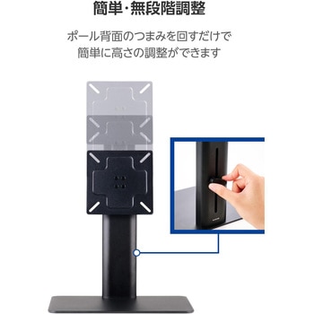 ポール背面のつまみをゆるめるだけで、アーム部分の高さを調整でき、モニターの位置も簡単に変えられます。