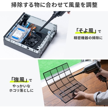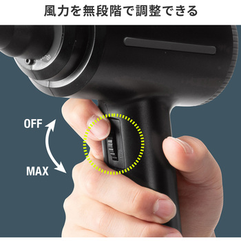 風量はダイヤルで細かく調整できるため、繊細な機器にもやさしいそよ風から強力噴射まで自在に対応します。