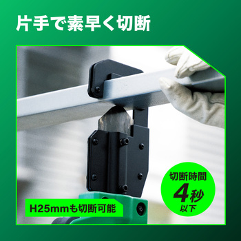 スイッチを押すだけの簡単切断。片手で材料を抑えることができ、手工具よりも簡単で安全で楽な作業を実現。