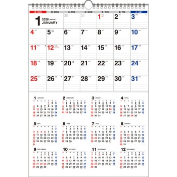 ひと目でわかる、月間&年間タイプのカレンダーです。5週6週混合タイプ。3色印刷。六曜、二十四節気、月相入り。本年と翌年の年間カレンダー付き。(A3/3色/タテ426×ヨコ298ミリ)