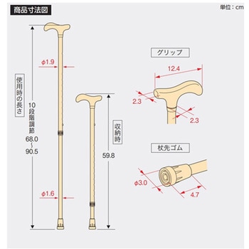 使用時:68.0~90.5(2.5間隔10段階調節)(全長:69~91.5/収納時:59.8)