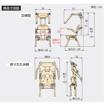 46~48×57~58×99~124、座面までの高さ/33~43