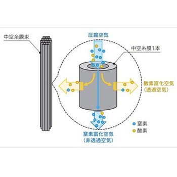 圧縮空気の供給のみで簡単に窒素富化空気の精製が可能